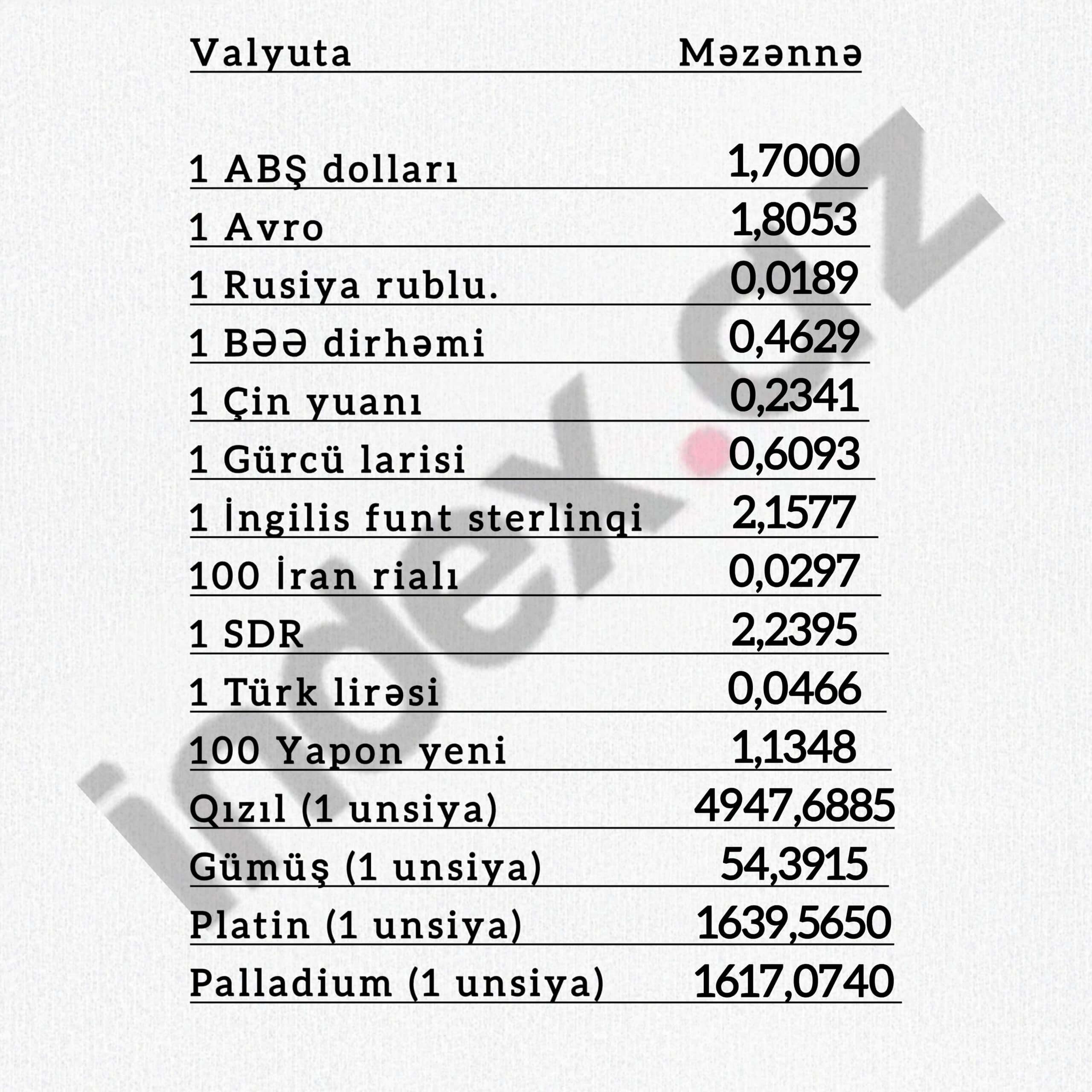 DOLLAR 1.70 0% AVRO 2.00 0.13% QIZIL 4,505.40 -0.31% GÜMÜŞ 71.88 0.56% WTI NEFT 58.40 -0.09% BRENT 62.29 -0.3% TƏBİİ QAZ 4.25 -3.74% DOLLAR 1.70 0% AVRO 2.00 0.13% QIZIL 4,505.40 -0.31% GÜMÜŞ 71.88 0.56% WTI NEFT 58.40 -0.09% BRENT 62.29 -0.3% TƏBİİ QAZ 4.25 -3.74%