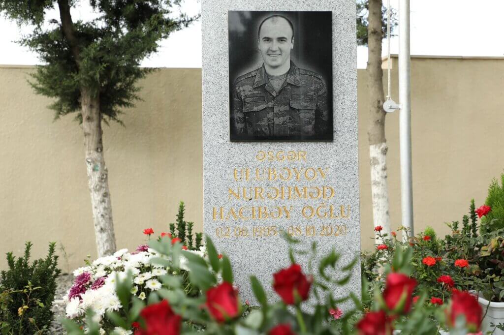 Daha sonra şəhidin əziz xatirəsini əbədiləşdirmək məqsədilə vaxtı ilə yaşadığı binanın həyətində inşa olunan abidəsi ziyarət edilib.
