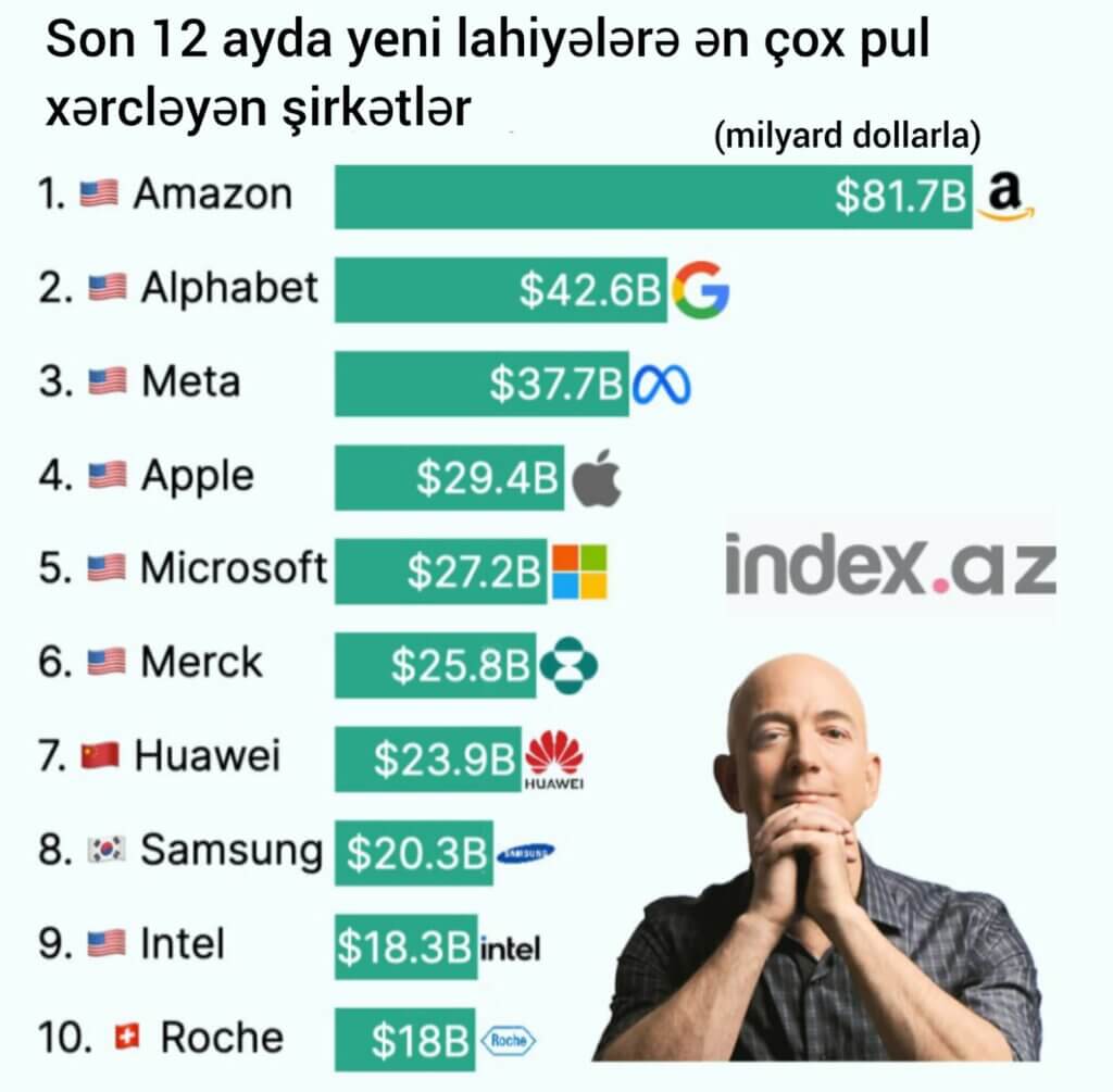 Son 12 ayda yeni lahiyələrə ən çox pulu "Amazon" xərcləyib.