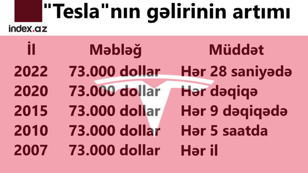 İndex.az "Tesla"nın gəlirinin artım səviyyəsini sizə təqdim edir: