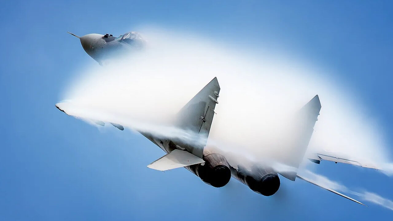 Bu genişlənmə və sıxılma hava təzyiqinin və temperaturunun qəfil azalmasına səbəb olur ki, bu da atmosferdəki su buxarının kiçik damlacıqlara çevrilməsinə və obyektin ətrafında nəzərə çarpan bulud və ya konus formalı strukturun əmələ gəlməsinə səbəb olur.
