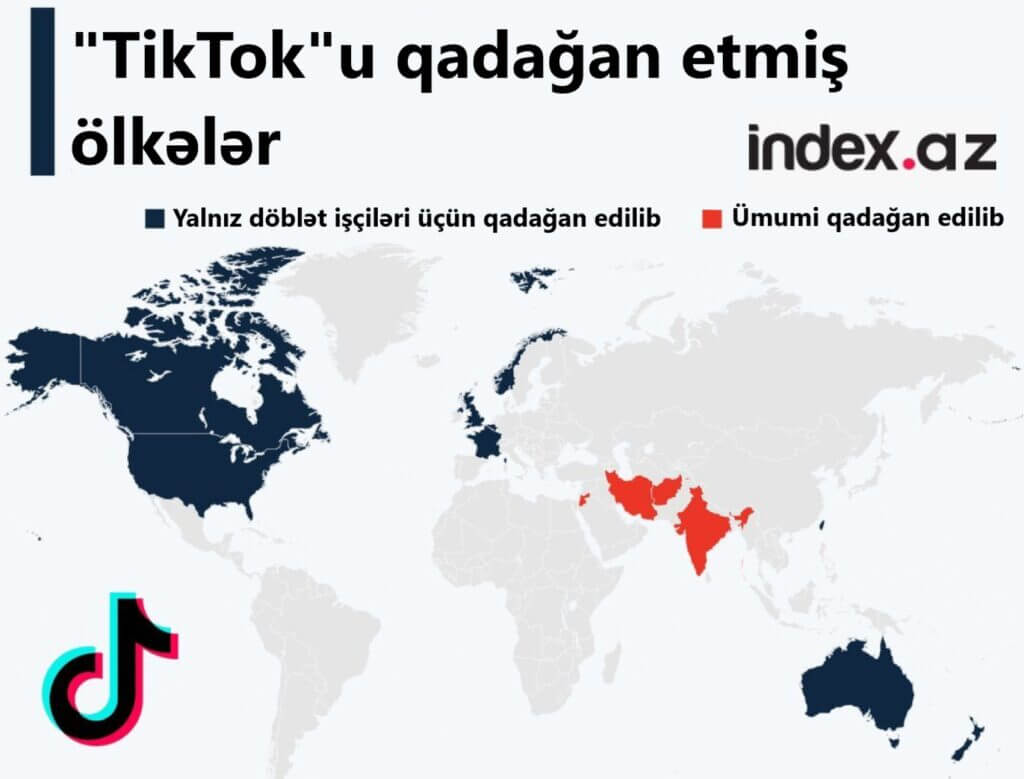 İndex.az xəbər verir ki, Hindistan, İran kimi ölkələrdə "TikTok" tamamilə qadağan olunub. Avstraliya, ABŞ, Kanada, Fransa kimi bir sıra ölkələrdə isə qadağa ancaq dövlət işçilərinə aiddir.