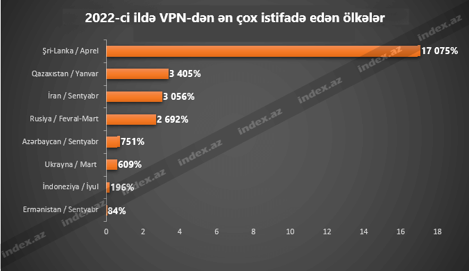 İndex.az 2022-ci ildə VPN-dən ən çox istifadə edən ölkələrin siyahısını təqdim edir: