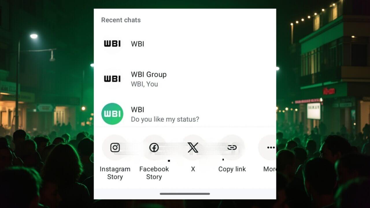 "WhatsApp" tətbiqində ekranın aşağı hissəsində yerləşən yeni paylaşma paneli "Instagram", "Facebook", X və "Snapchat" kimi platformalara məzmunu asanlıqla yükləməyə imkan verir.