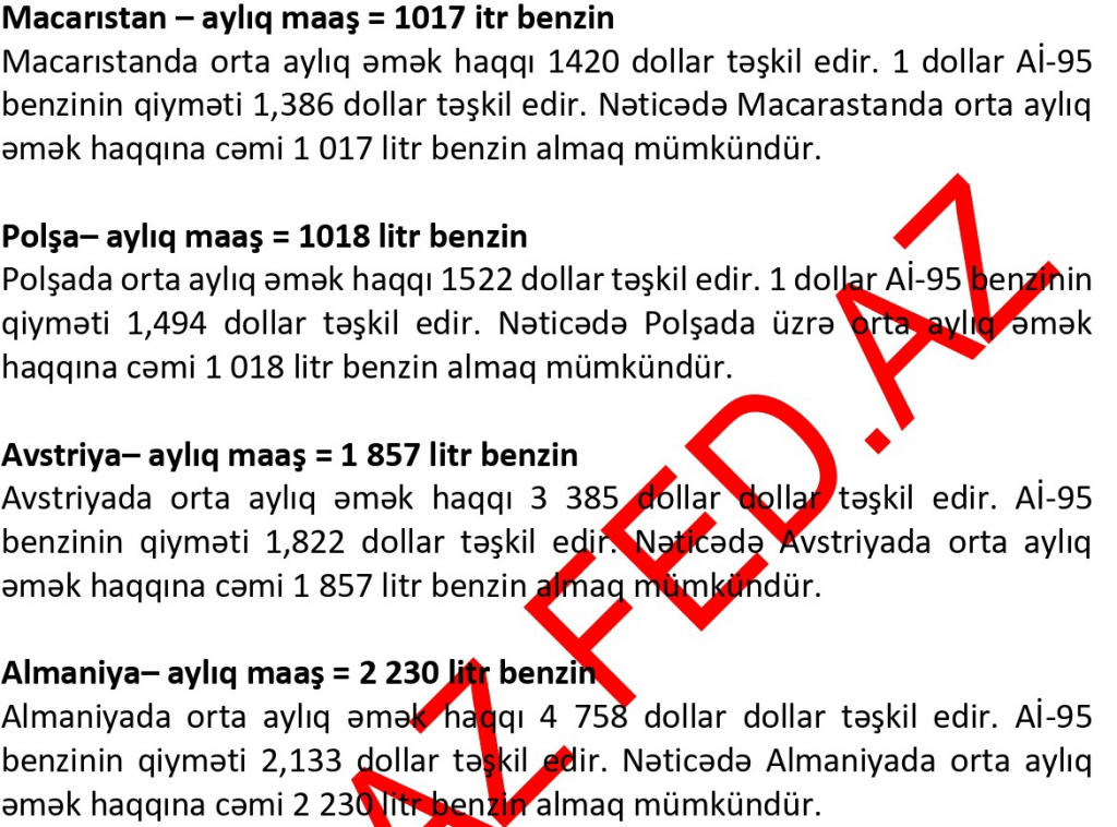 Bir neçə gün əvvəl ABŞ-da benzinin qiymətinin rekord vuraraq litrinin qiymətinin 1,15 dollara və ya 1,96 manata yüksəldiyi barədə məlumat dünya ölkələrində, xüsusilə də MDB-də və keçmiş sovet respublikalarında benzinin qiyməti və orta aylıq əmək haqları ilə bağlı araşdırmaya ehtiyac yaradıb.
