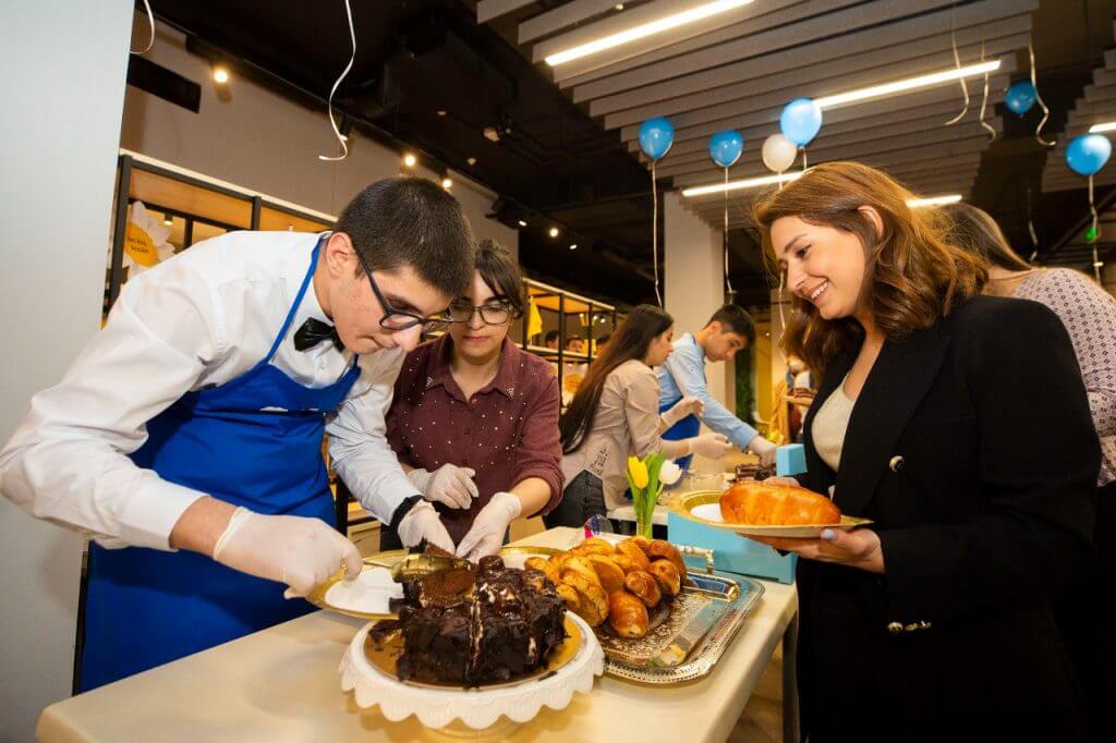 Qonaqlar Baş ofisdəki iş mühiti və kollektivlə tanış oldular. Daha sonra birliyin nəzdində fəaliyyət göstərən “Kashalata Café” tərəfindən Bankın yeməkxanasında şirniyyat yarmarkası həyata keçirildi. Autizm sindromlu gənclərin hazırladığı müxtəlif şirniyyatlar əməkdaşların böyük marağına səbəb oldu.