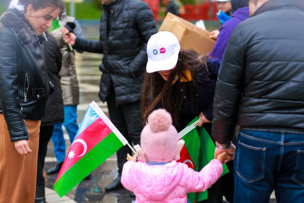 Tariximizin şanlı günlərinə xüsusi önəmlə yanaşan “Nar” və Azərbaycan Könüllü Təşkilatları İttifaqı, Zəfər günü münasibətilə Azərbaycan xalqını təbrik etdi. 8 Noyabr “Zəfər günü” və 9 Noyabr “Bayraq günü” münasibətilə vətəndaşlara şanlı Azərbaycan bayraqları hədiyyə olundu. Təşəbbüs “Nar” və AKTİ-dən 200 könüllünün birgə iştirakı ilə paxtaxtın mərkəzi küçələrində həyata keçirilib. Vətəndaşlarımızın böyük sevinc və qürur hissi ilə qarşıladığı layihədən görüntüləri izləyə bilərsiniz.