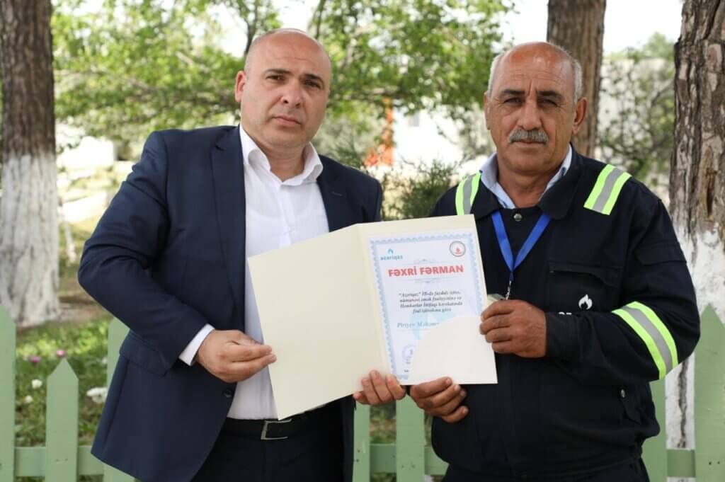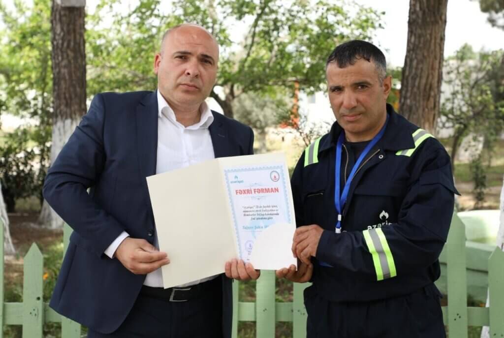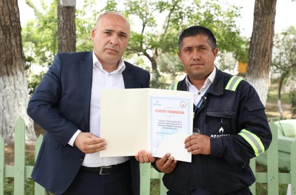 Baş direktorun müavini Şəmkir Regional qaz istismarı İdarəsinin tabeliyində olan xidmət sahələrində çalışan ümumilikdə 14 əməkdaşı SOCAR "Azəriqaz" İB-də faydalı işinə, nümunəvi əmək fəaliyyətinə görə Fəxri Fərman və hədiyyə ilə mükafatlandırıb.