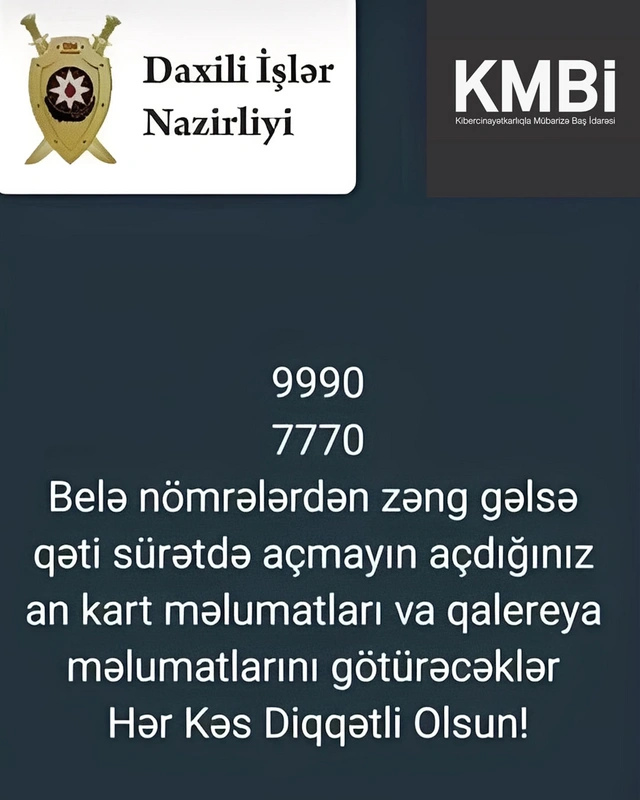 Yayılan məlumatlara görə, "9990", "7770" nömrələrindən vətəndaşlara zənglər gəlir və smartfonda olan tətbiqlərdən vəsait çıxarılır.