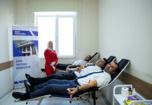 “Dəstək olaq, təbəssümlər çoxalsın!” şüarı ilə keçirilən qanvermə aksiyasında Bankın rəhbərliyi və əməkdaşları iştirak edib. Mərkəzi Qan Bankının xüsusi tibb briqadasının həkim hematoloqları tərəfindən hər bir donorun sağlamlığı yoxlanıldıqdan sonra onlardan qan götürülüb.