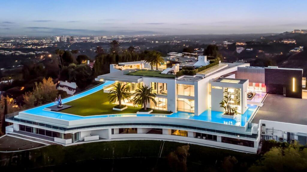 - "Bel Air"də yerləşən bu ultra müasir malikanə 105,000 m² sahəyə malikdir. 7 yataq otağı, 11 vanna otağı, beş hovuz, 36 nəfərlik sinema salonu, gecə klubu və 360 dərəcə mənzərəli terasları ilə diqqət çəkir. Əmlak inkişaf etdiricisi Nail Niami tərəfindən tikilən bu ev ABŞ-ın ən bahalı evlərindən biridir.