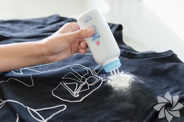 Yağlı köynəkdəki ləkəni çıxarmaq üçün körpə pudrası ən yaxşısıdır! Yağlı yerə bir az körpə pudrası tökün və oturmasına icazə verin. Görəcəksən ki, o, yağı özünə çəkir.