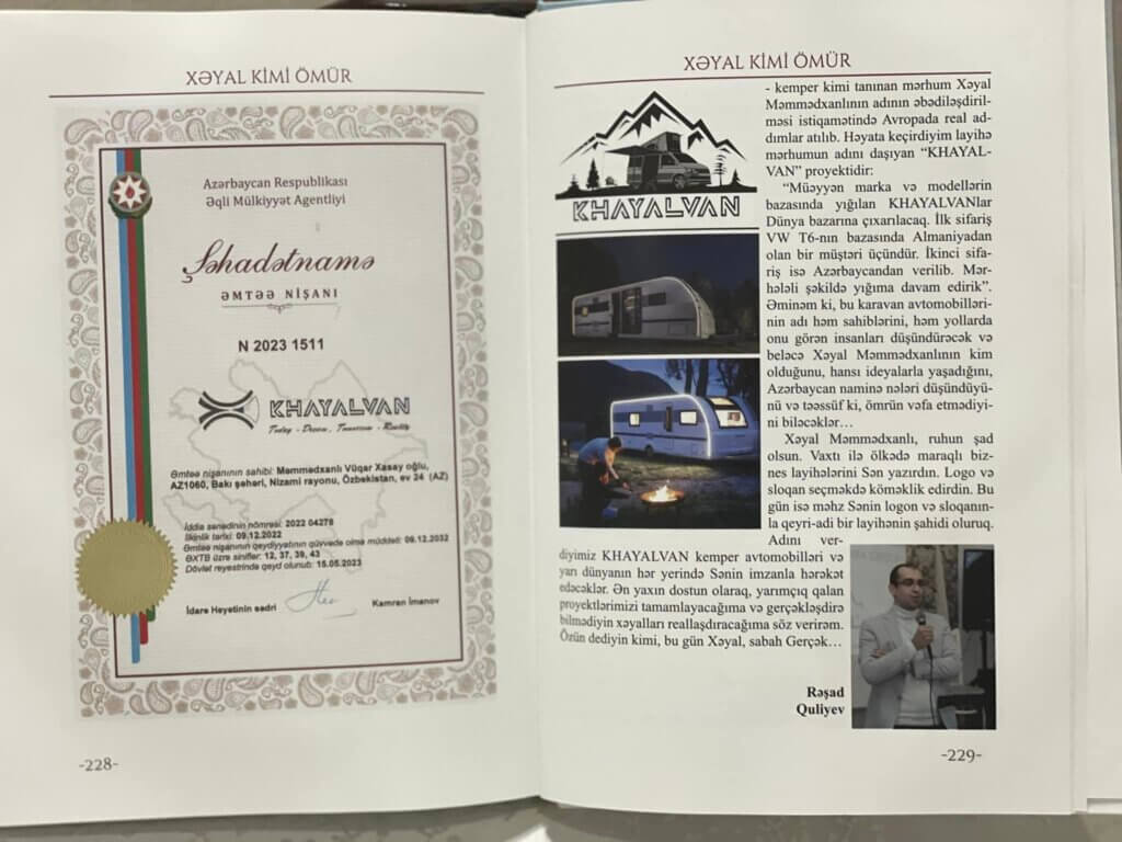 Qeyd edək ki, “KHAYALVAN CONSTRUCTİON MMC” 2020-ci ilin dekabrında 42 yaşında koronavirusdan vəfat edən tanınmış iş adamı, biznes məsləhətçisi, sığorta mütəxəssisi və təlimçisi Xəyal Məmmədxanlının adı ilə bağlıdır. Şirkətin təsisçiləri isə Rəşad Quliyev və Xəyalın qardaşı Vűqar Məmmədxanlıdır.