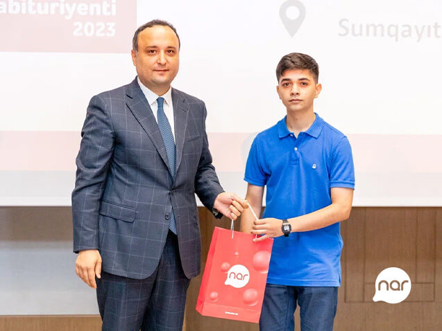 “Nar” 2022-2023-cü tədris ilində ali məktəblərə qəbul imtahanları zamanı ən yüksək bal toplayan ilk on abituriyenti dəyərli hədiyyələrlə mükafatlandırıb. Modern.az İnfromasiya Agentliyinin media dəstəyi ilə baş tutan layihə çərçivəsində hər bir tələbəyə “Nar”-dan qızıl nömrə, 700 AZN balans və müasir smartfonlar hədiyyə edilib.