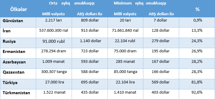 Türkmənistanda isə əksinə olaraq orta aylıq əməkhaqqı 1522 manat olduğu halda, minimum aylıq əməkhaqqı cəmi 1410 manatdır.