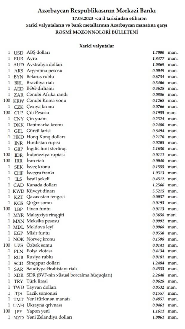 DOLLAR 1.70 0% AVRO 1.99 0% QIZIL 4,328.30 0% GÜMÜŞ 62.01 0% WTI NEFT 57.24 -0.35% BRENT 61.12 0% TƏBİİ QAZ 4.11 0% DOLLAR 1.70 0% AVRO 1.99 0% QIZIL 4,328.30 0% GÜMÜŞ 62.01 0% WTI NEFT 57.24 -0.35% BRENT 61.12 0% TƏBİİ QAZ 4.11 0%