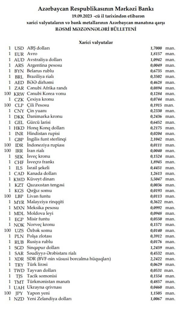 DOLLAR 1.70 0% AVRO 2.00 0.12% QIZIL 4,357.65 -0.22% GÜMÜŞ 65.40 -1.78% WTI NEFT 55.89 -0.36% BRENT 59.73 -0.2% TƏBİİ QAZ 3.90 -4.17% DOLLAR 1.70 0% AVRO 2.00 0.12% QIZIL 4,357.65 -0.22% GÜMÜŞ 65.40 -1.78% WTI NEFT 55.89 -0.36% BRENT 59.73 -0.2% TƏBİİ QAZ 3.90 -4.17%