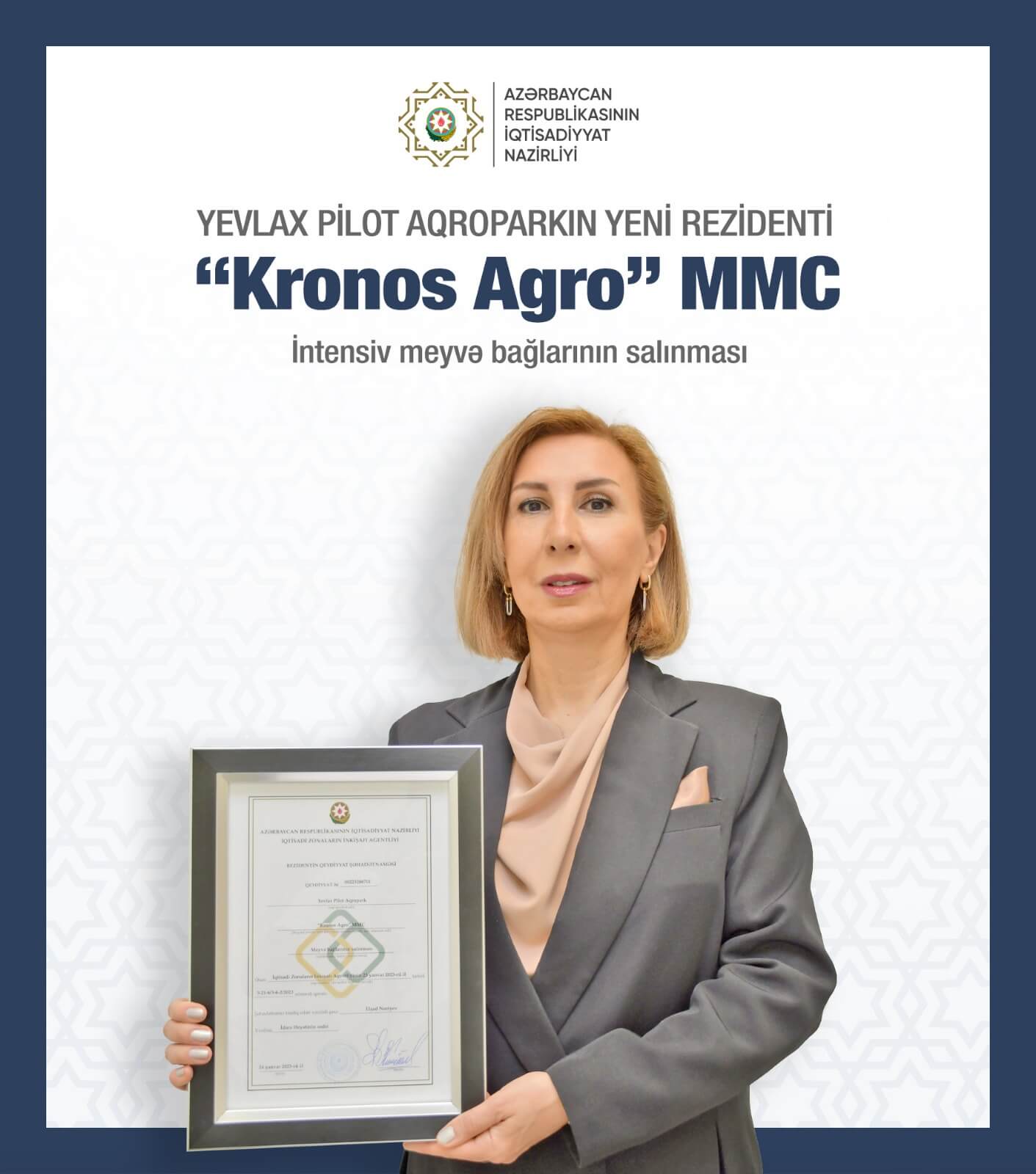 Yevlax Pilot Aqroparkda fərdi sahibkar Əli Əhmədova və "Kronos Agro" MMC-yə rezident statusu verilib.
