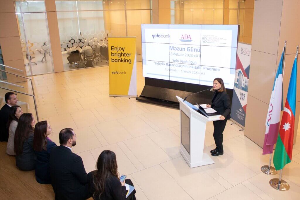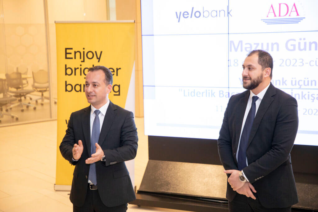 Əməkdaşlarına kapital kimi yanaşan və onların inkişafı üçün daim investisiya edən “Yelo Bank”ın növbəti layihəsi uğurla başa çatdı. ADA universiteti ilə birgə keçirilən “Liderliyin inkişafı” proqramı Bankın rəhbər heyəti üçün nəzərdə tutulub. Proqram iştirakçıların həm şəxsi, həm peşəkar inkişafına yönləndirilmiş təlimləri əhatə edib. Dünya Bankı, ABŞ səfirliyi, ADA universiteti kimi qurumlardan dəvət olunmuş qonaq təlimçilərlə iştirakçılar arasında peşəkar təcrübə mübadiləsi aparılıb. Proqram bütün iştirakçılara sertifikat təqdim olunduğu məzun günü ilə yekunlaşıb.